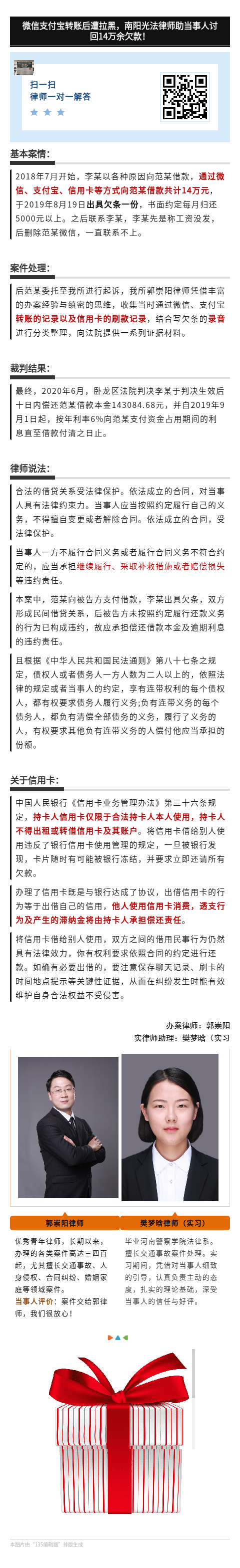 光法案例|微信支付宝转账后遭拉黑,南阳光法律师助当事人讨回14万余欠款!