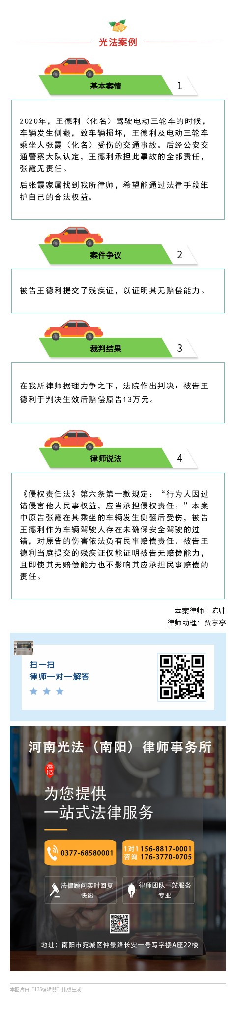 光法案例|有残疾证是否可以不承担民事赔偿责任