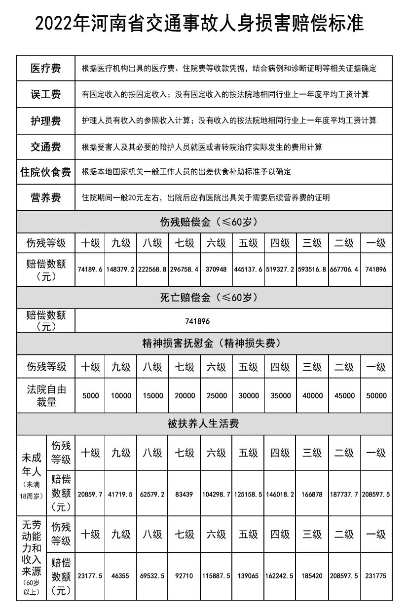 河南省人损案件赔偿计算标准(2022版)